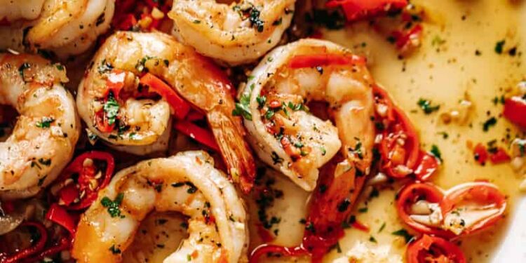 Chili Garlic Butter Shrimp is the easiest low carb weeknight or weekend meal! A garlic buttery sauce with a smack of chili will be on your mind for days after. Ready in less than 10 minutes, what could be better than this? Not much else!Whether you serve these as a quick, delicious appetiser or a light meal over rice or pasta, there’s nothing like mopping up the silky, buttery sauce with some fresh, warm homemade bread and sipping on a chilled glass of white wine. You will definitely enjoy these shrimp or prawns with a good kick of flavour — one you won’t fast forget!